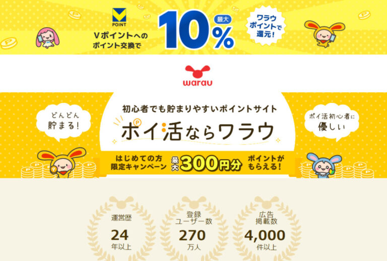それが、25年以上の運営実績を誇る老舗ポイントサイト『ワラウ(warau)』です。